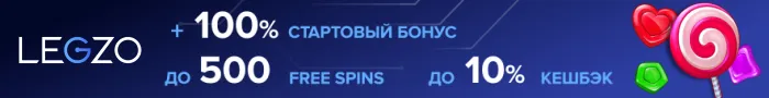 Приветственный пакет в Legzo включает 100% на первый депозит и до 500 фриспинов. Установленный вейджер х35 на бонусные средства является одним из самых низких на рынке, что делает отыгрыш вполне реальным даже для новичков.